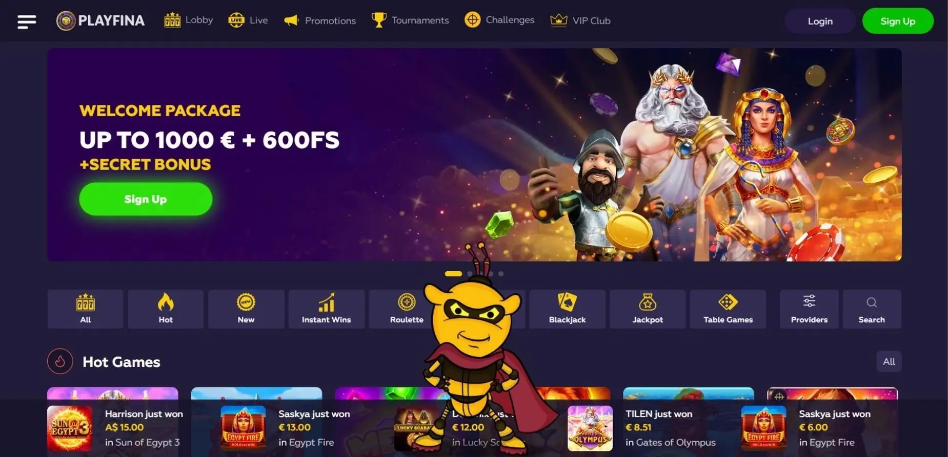 Playfina offers a wide variety of slot games on their platform, including classic slots, video slots, progressive jackpot slots, and themed slots. Players can choose from a range of themes, features, and paylines to suit their preferences.